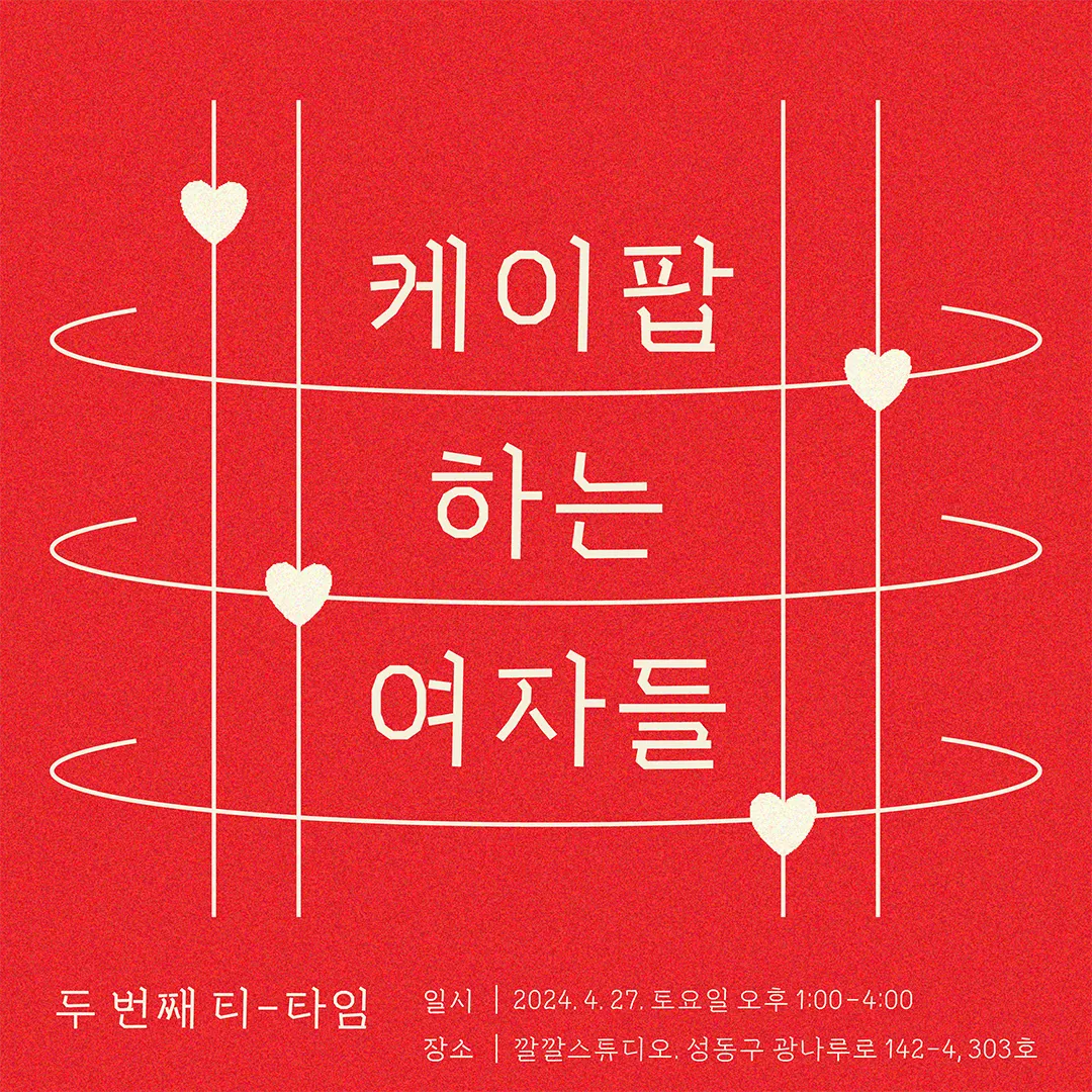 ‘케이팝 하는 여자들’은 케이팝의 소비자가 대부분이 여성임에도 불구하고 여성의 발화 기회가 적다는 문제에서 출발한 모임입니다. 우선 주변에 케이팝 관련 콘텐츠 만드는 분들을 섭외해, 다양한 여성 팬과 함께 팬 경험을 이야기 나눴습니다. 각자의 덕질, 의심, 거리 두기, 복잡한 애정의 언어를 나누며, 팬으로 존재하는 방법을 스스로 만들어가는 과정을 공유했습니다. 주최자 유진의 초대와 서해인 파트너의 도움을 통해 2번의 티타임을 진행했습니다.
